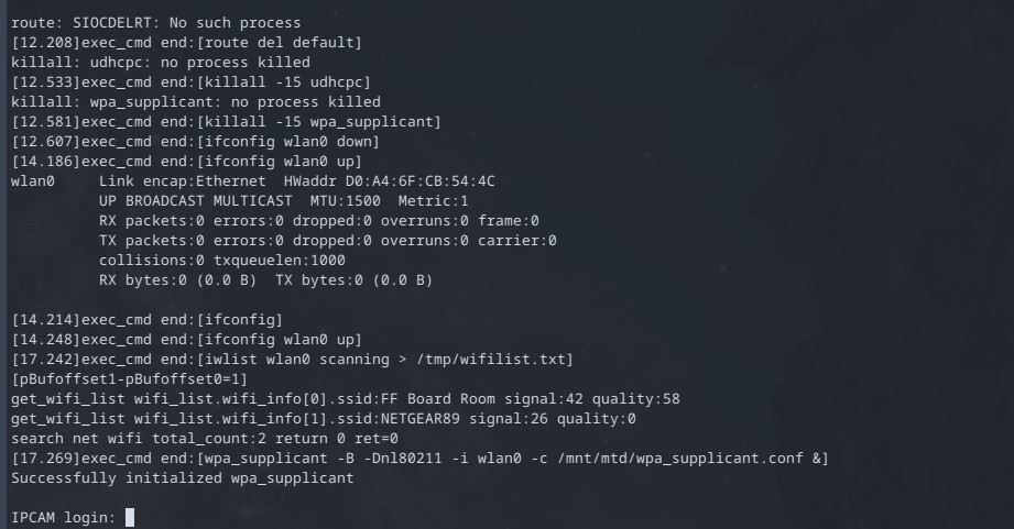 With the device under my control I want to investigate how the device operates with WiFi. Since this is a camera, getting a hold of the video stream without any need for authentication would be a fun endeavor.