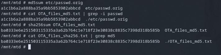 There was a chain of authentication, the OTA_files_md5.txt file contains a hash of passwd.orig