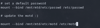 first log in. To do this I leveraged the bind flag that was used for the passwd file in the boot.sh
