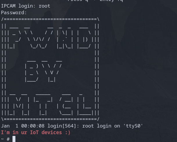 With a root shell I could manually hand-hold the camera's startup process, but it would be easier to let the camera start up and mount it's partitions and configure everything and then log in through the normal boot process. We can create a backdoor by updating the credentials for the root account to a password we know.