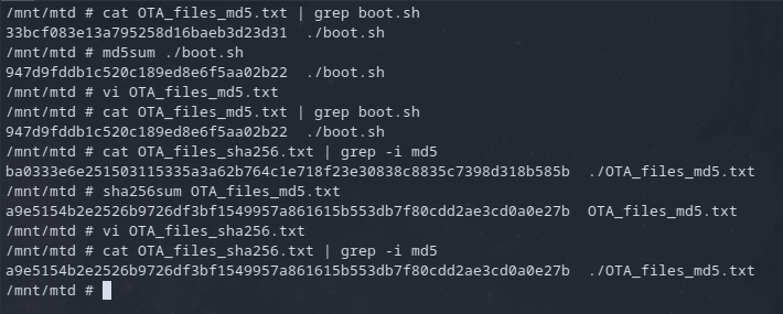 But now with the boot.sh file modified, it's entry in the OTA_files_md5.txt was invalid so I just